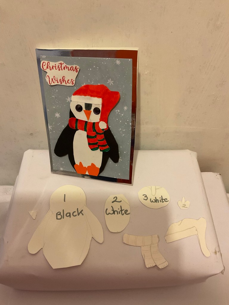 Hi everyone. Today I have a project for you to make for yourself. It’s this really cute penguin card and I’ll leave a picture of the template set so that you can screenshot them, print them off, cut them out and use them to make your own cute penguin. The card and mirror card Matt measure 5×7 inches. The snowflake Matt measures 4.3/4 x 6.3/4 inches. There is a video on my First Light Crafts you tube channel showing you how to make this penguin set up and add it to your card.