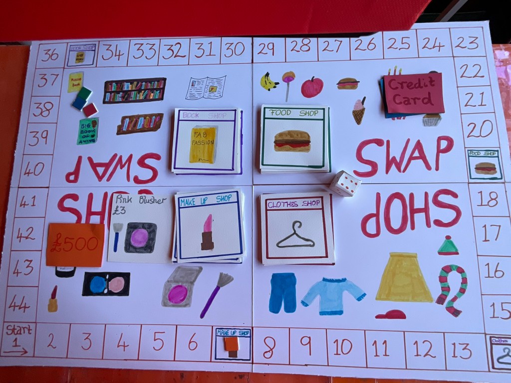 As you can see, my game has moved on quite a bit since yesterday’s post. The game will be called shop and swap, and I love the look of the completed board. I’ve also finished two of the shopping card sets, and I have another two to make up, plus other elements for this game. I hope to be back tomorrow with a further progress report and show you all four completed shopping card sets, plus another crucial element for this game. So do pop back tomorrow and see how this game develops. 🌅