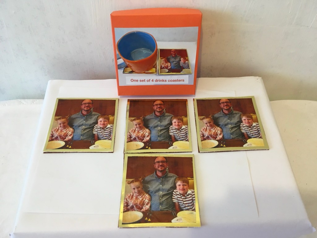How this works is very simple. You can send your family photo to me, and I will make it up into a beautiful set of drinks coasters which will be presented in a beautiful box. These coasters make great gifts for grandparents, aunts and uncles. They are coated with a water resistant film and all they need is a wipe with a damp cloth to clean them. They shouldn’t be submerged in water or go in the dishwasher.