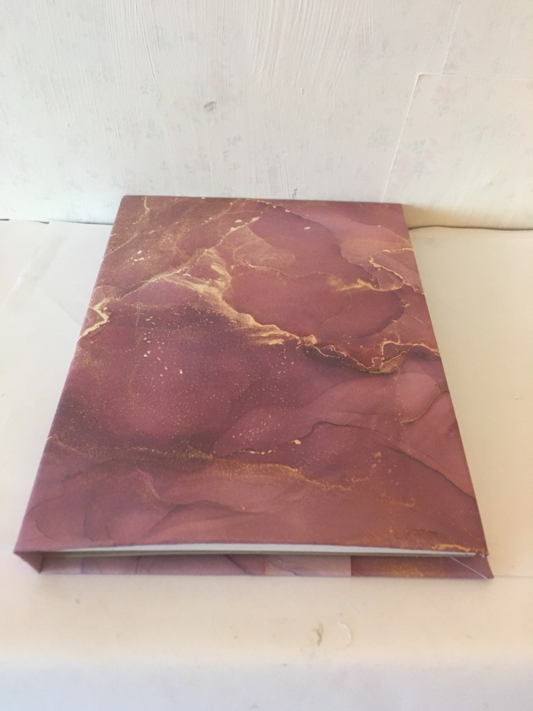 This notebook is from my paper boutique collection and the cover is made with a designer paper called ink spots. The fine veins give it a very chic look and make it even more stylish. It is also an A5 book with lined paper on the inside. I keep this one on my desk, and it gets lots of compliments from visitors when they see it.