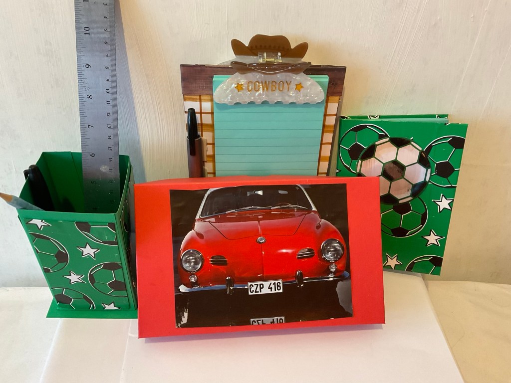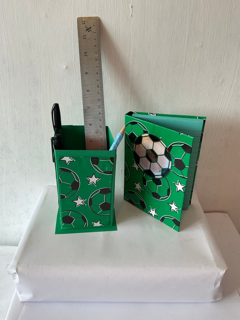 This notebook and coordinating pen caddy is the ideal gift for any football enthusiast. I will have a birthday card for football fans very soon. In fact my next batch of items will be greeting cards for men and at least one of these will be football themed. I’m pleased with this first set and it’s already been requested by a neighbour whose son is mad about football.