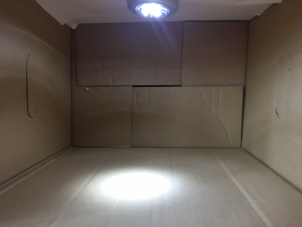 Each room in my dolls house starts as an empty cardboard box. I’ve added the light to make it easier to see, as it’s rather dark inside with no lighting. So far, I have six boxes, but I’m planning to buy another pack so that I can add two more rooms in the attic. I currently have the flaps off of one of the ends to make an open space at the front. – come and see the flooring.